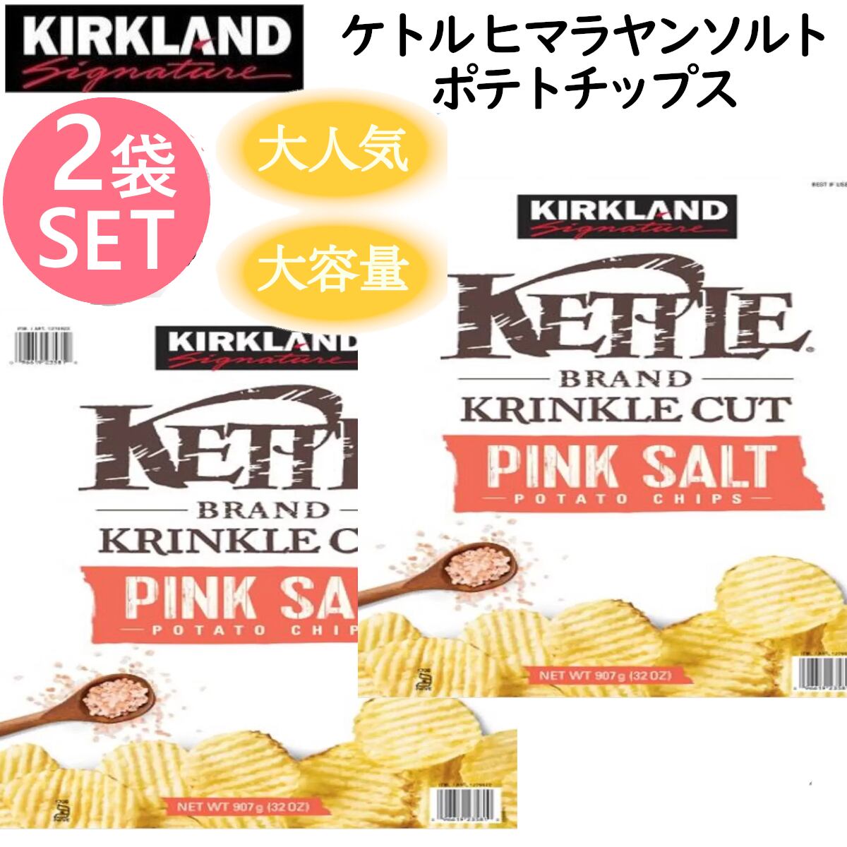 2袋セット!カークランドシグネチャー ケトル ピンクソルト ポテトチップス 907g×2個 大容量 ウェーブカットポテト お菓子 スナック菓子 たっぷり 塩味 じゃがいも コストコ 人気商品