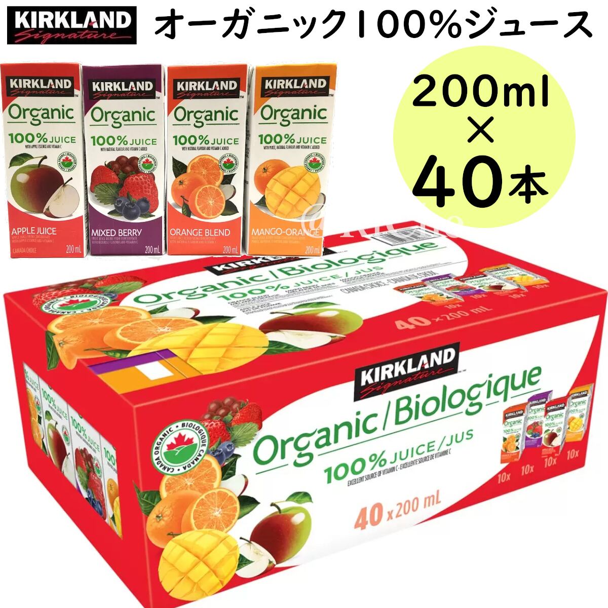 カークランドシグネチャー オーガニック100%ジュース 200mlx40本 1ケース販売 お買い得 果物飲料 紙パック 濃縮還元果汁100%オレンジマンゴーミックスベリーりんご お中元 贈り物 コストコ 直送品 有機100%砂糖不使用