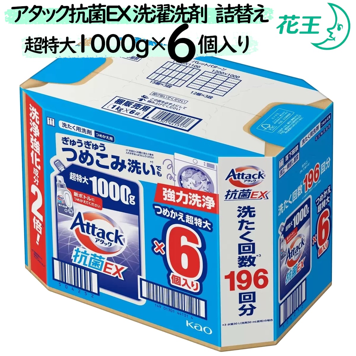 アタック抗菌EX 洗濯洗剤 詰替え 1000g x 6 個入り