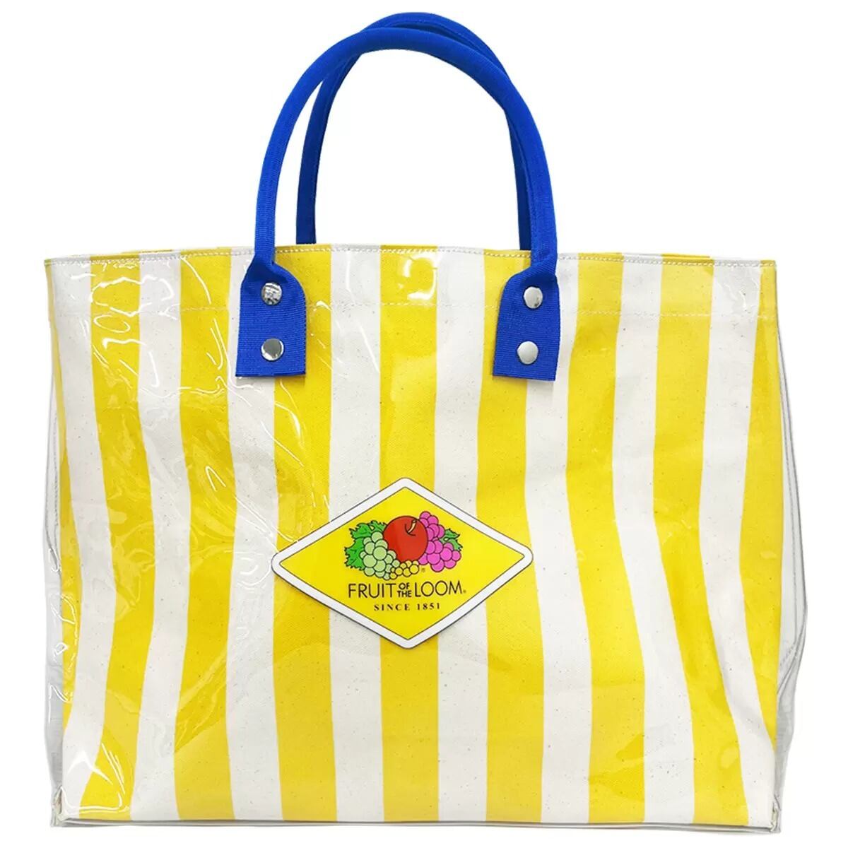 FRUIT OF THE LOOMフルーツ オブ ザ ルーム クリアストライプ×裏地キャンバス生地トートバッグ おしゃれ可愛い 4カラー展開 マチ付き 透明ビニールPVC 防水 レディース コストコ 直送品