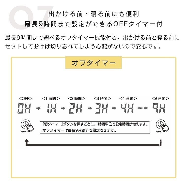 オフタイマー(1h-9h)。