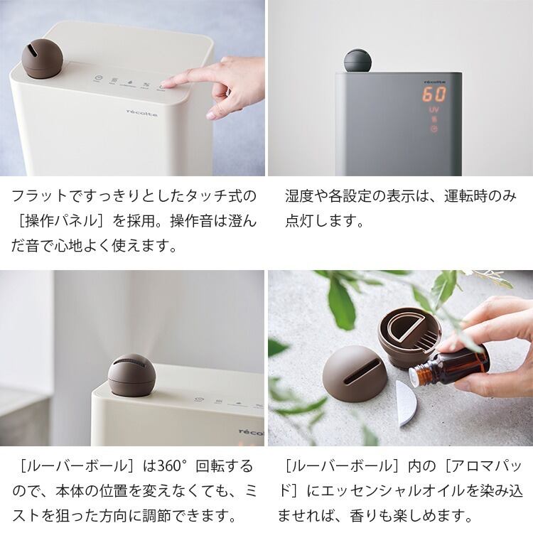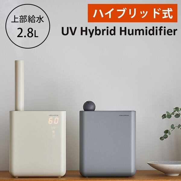rècolteレコルト UVハイブリッド式加湿器 おしゃれ液晶 加湿ヒーターハイブリッド式 トリプル除菌 抗菌Ag+イオン効果 2.8L 10畳 ホワイトグレー RHF-1 季節家電 コストコ 直送品