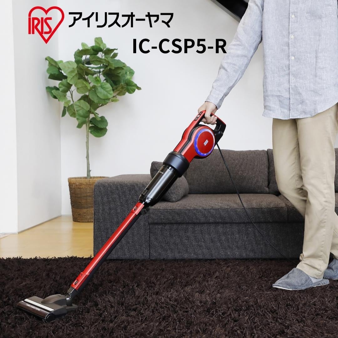 IRIS OHYAMAアイリスオーヤマキャニスティッククリーナー ハイパワー 吸引力3倍 ハンディ掃除機 紙パック式 コード式 独自技術 2WAY 軽量 赤レッド IC-CSP5