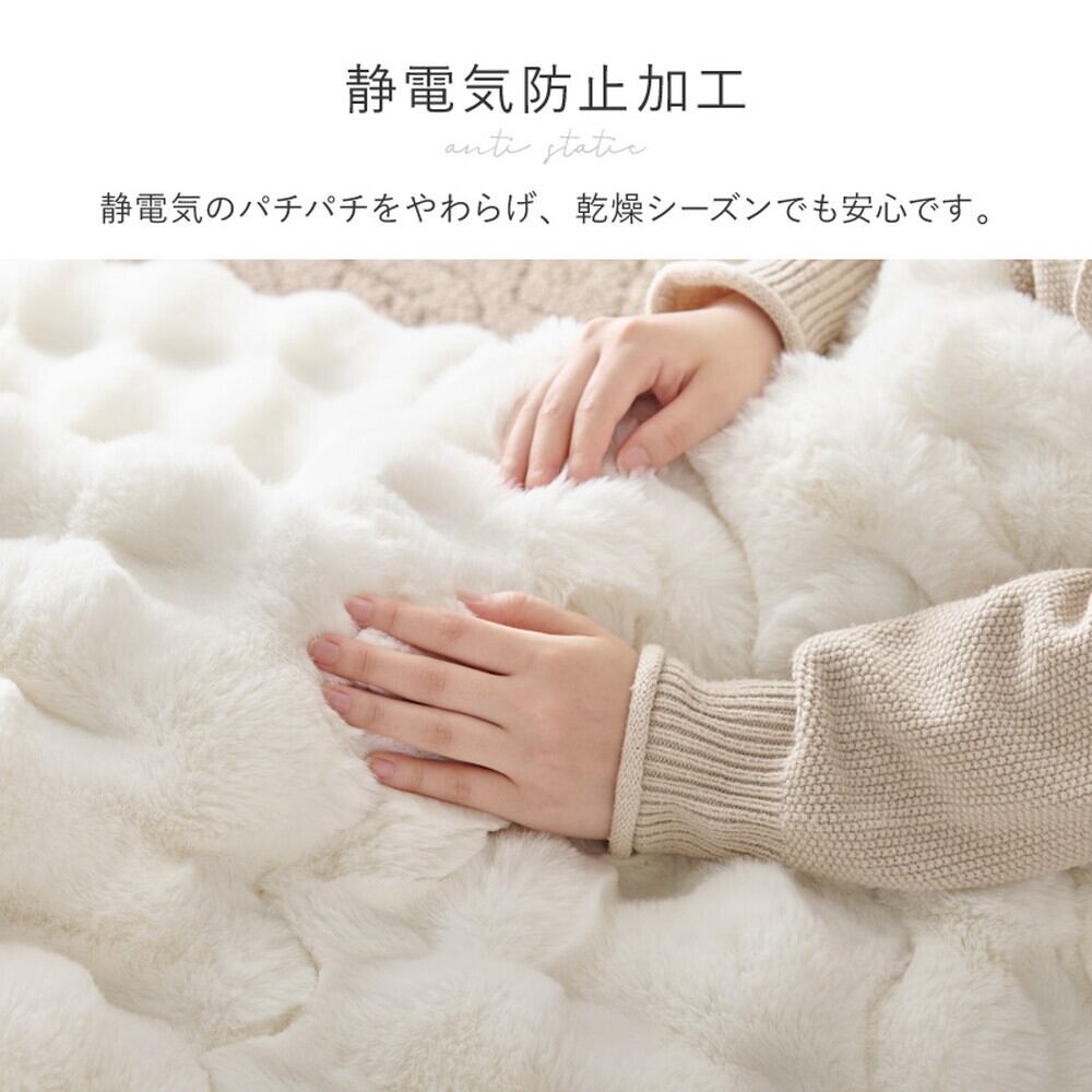 やさしく包み込むようなふわふわタッチに、ぽこぽことした見た目も可愛いおしゃれなこたつ布団です。