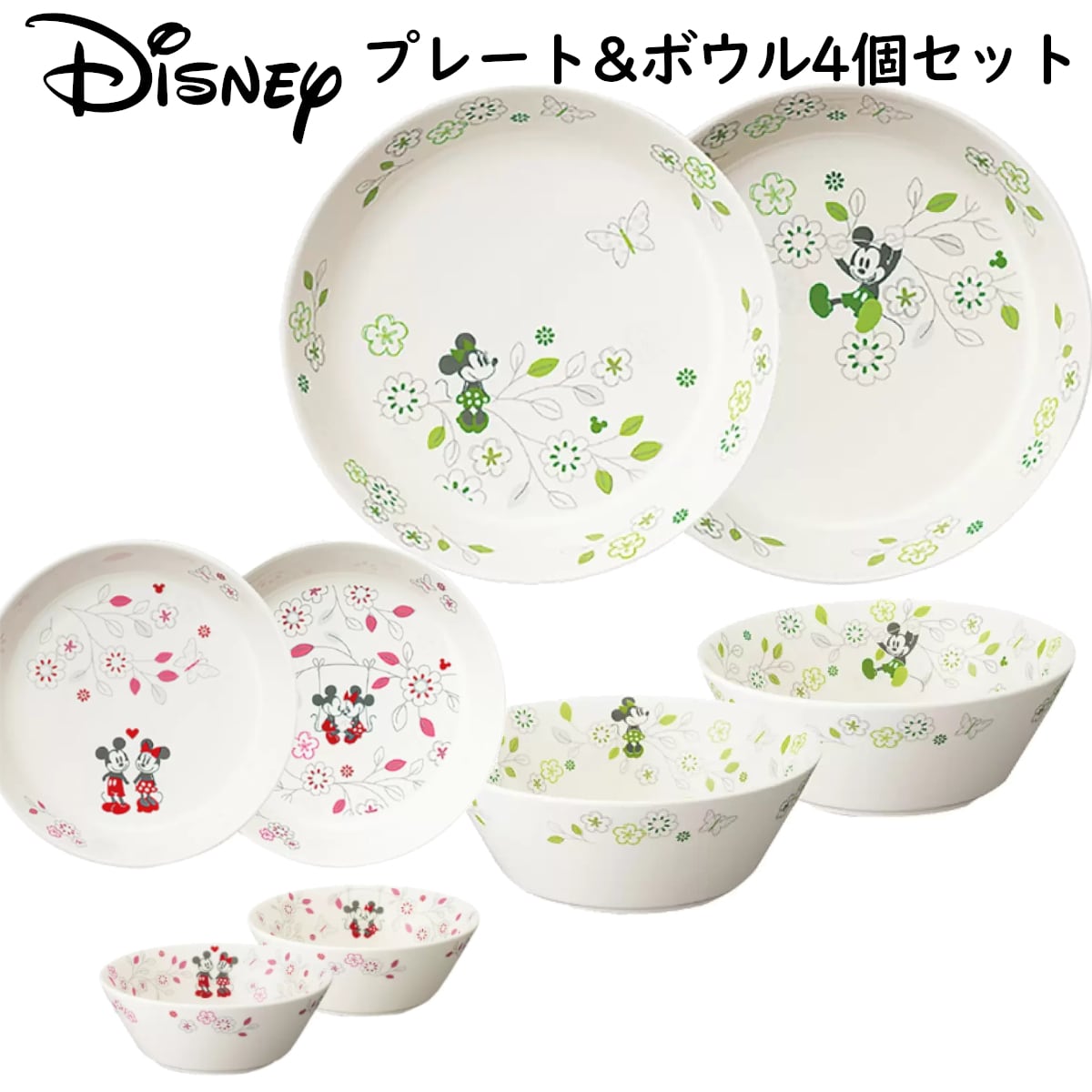 Disneyディズニー プレート&ボウル4個セット グリーンorピンク パスタ カレー皿 サラダ スープボウル ミッキーミニー 電子レンジ使用可能 食洗器使用可能 かわいいキャラクター食器 コストコ 直送品