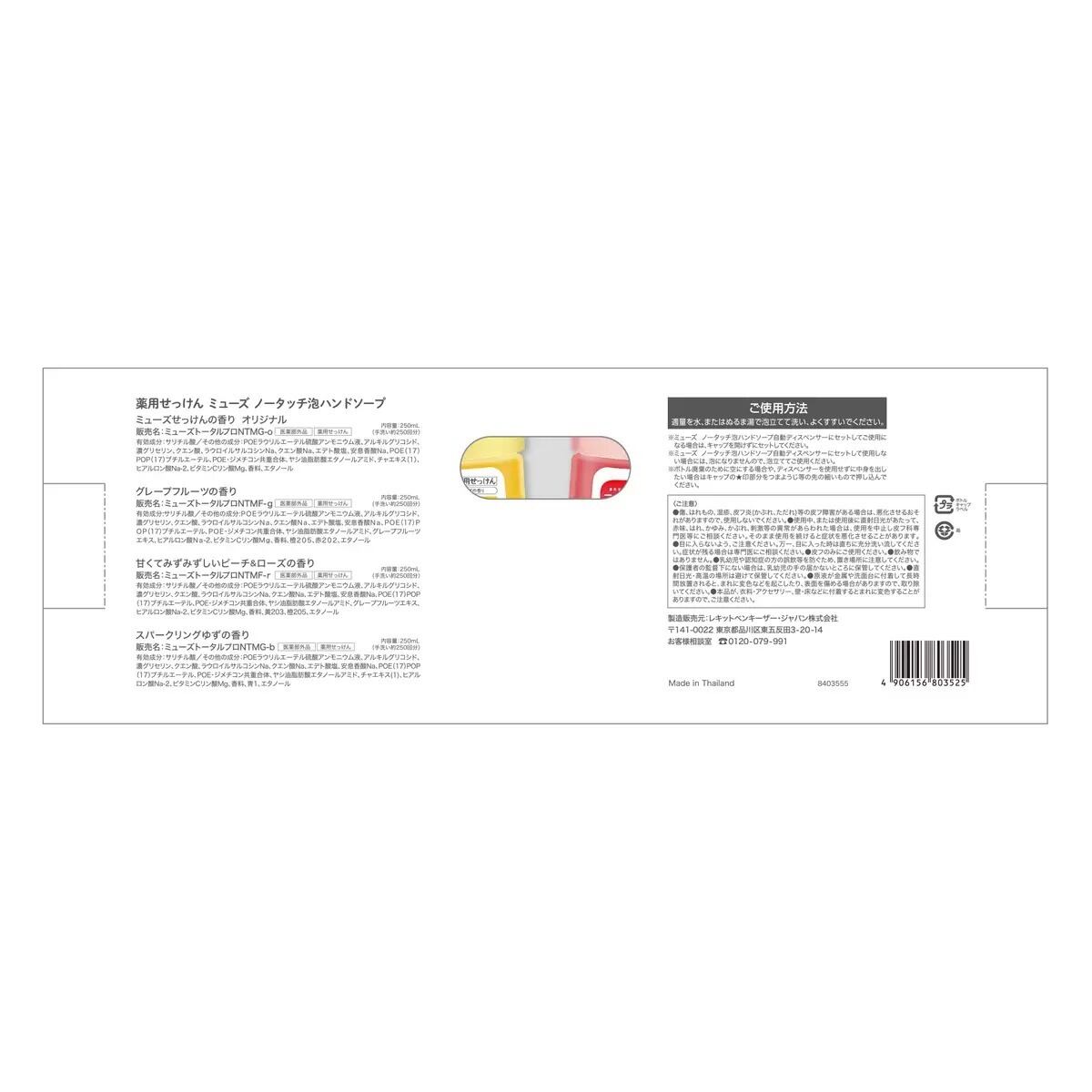 「薬用せっけんミューズノータッチ泡ハンドソープ自動ディスペンサー」にセットして使用できる薬用ハンドソープです。